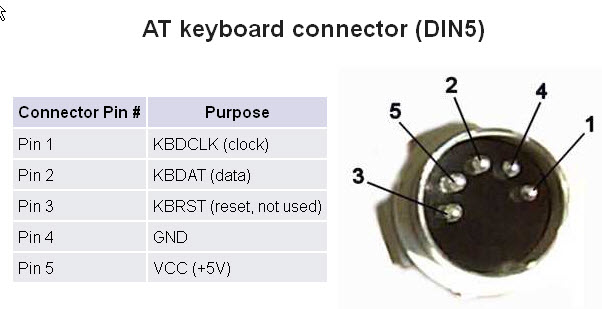 An AT keyboard may also be used to describe a keyboard that uses the AT (Din5) port as shown in the picture to the left. The Din5 Port is rarely used today since most computers use PS/2 and USB keyboards.